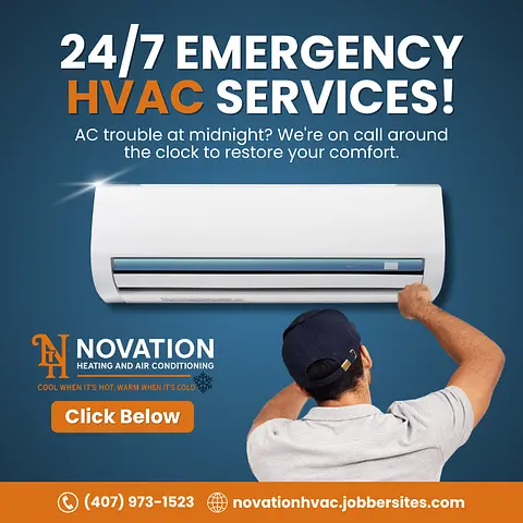 At Novation Heating & Air Conditioning, we deliver fast, expert HVAC solutions throughout Central Florida. Our certified technicians bring over a decade of experience to every residential and commercial project—ensuring lasting comfort, reliability, and peace of mind. We specialize in rapid-response service, innovative HVAC design, and precision system inspections. Whether it’s installation, repair, or maintenance, we keep your spaces cool when it’s hot, warm when it’s not, and comfortable all year long. Novation means more than just fixing issues—we focus on smart solutions, same-day service, and building lasting trust with every customer we serve. Your comfort is our commitment.